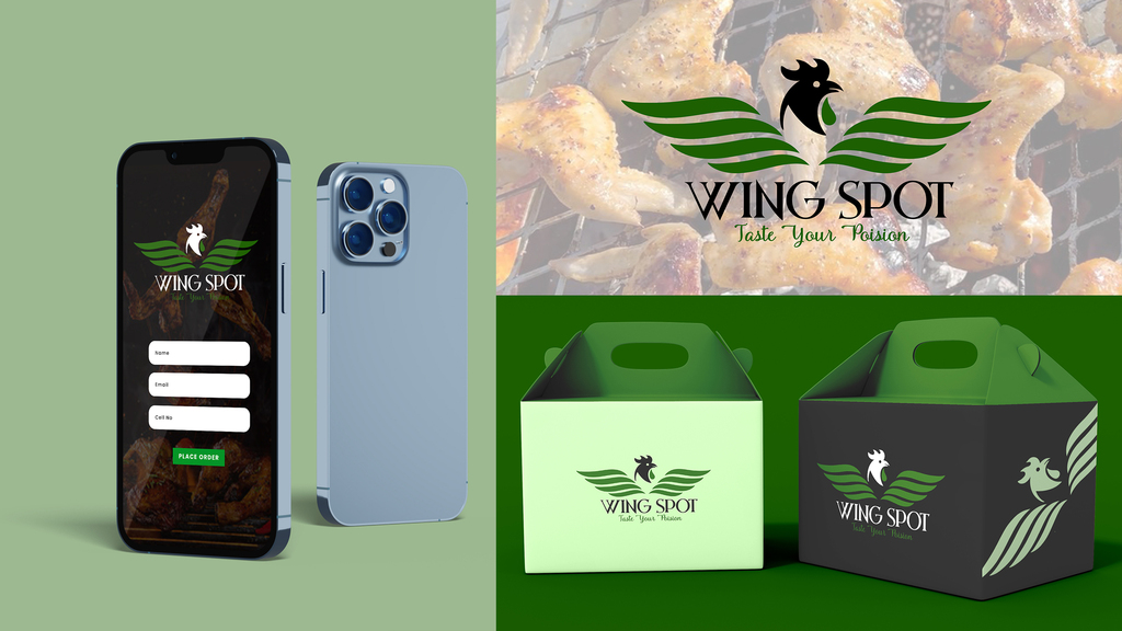 The visual identity for Wing Spot embodies a vibrant and energetic feel, capturing the essence of a lively fast-food experience. Utilizing bold colors and playful typography, the design reflects the fun and indulgent nature of chicken wings.