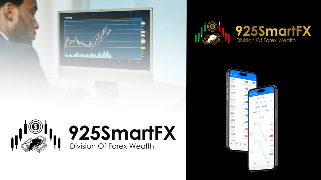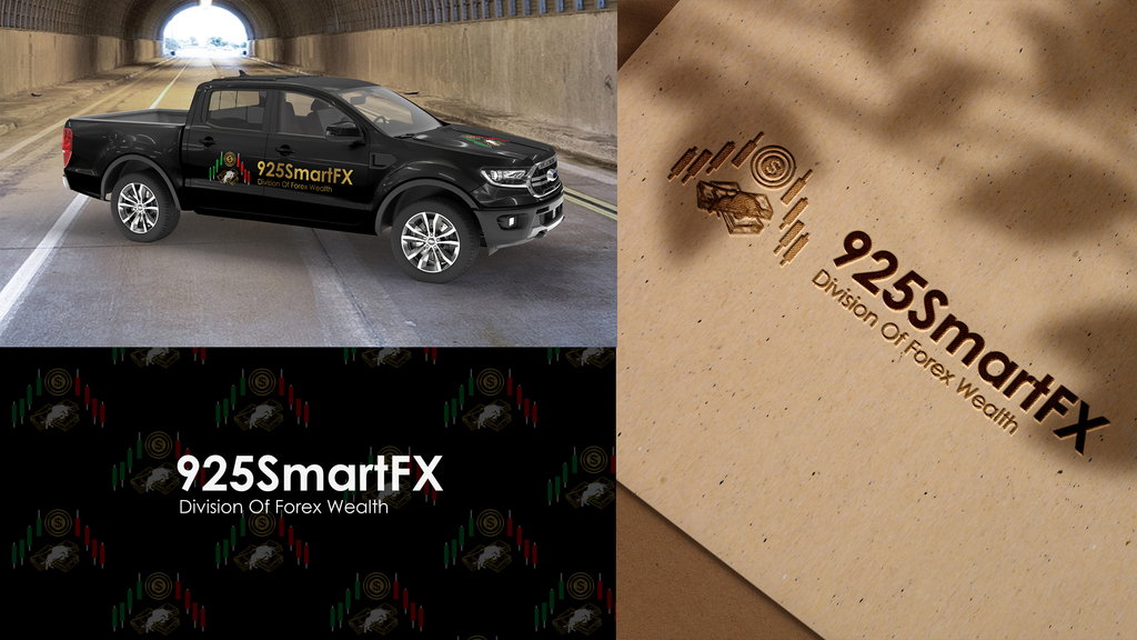 The design for 925Smart FX features a distinctive logo encapsulating candlesticks to represent trading charts along with a cash cow, symbolizing profitability. The typeface is enhanced with a gold gradient, signifying the value of gold currency in the forex market.