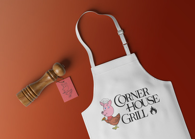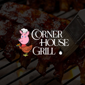 Corner House Grill, located in Pimville, Soweto, boasts a vibrant identity featuring a playful logo of a chicken with a pig's head. This unique design reflects the fast food joint's specialization in delicious chicken and pork dishes, ensuring a memorable brand presence.