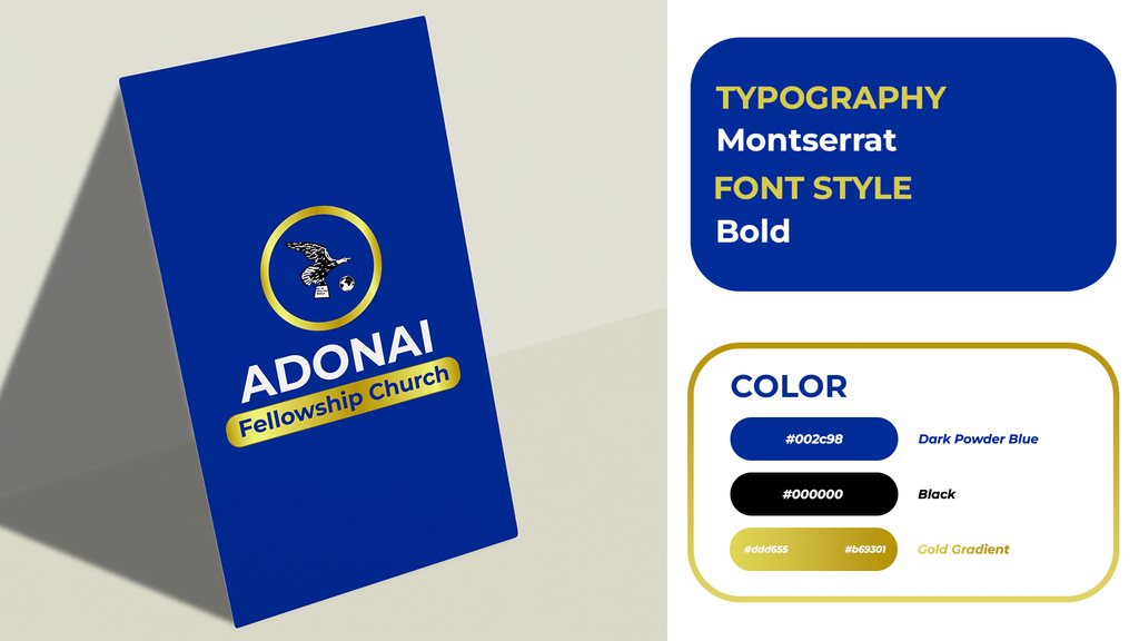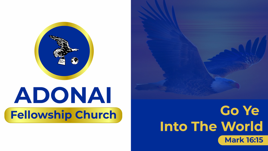The design for Adonai Fellowship Church features a striking logo, incorporating an eagle clutching a Bible as it soars towards a globe. This design embodies the church's mission, reflecting the slogan "Go Ye Into The World" from Mark 16:15.